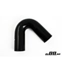 Black silicone hose 135 degree elbow suitable for pressure or suction applications, for example between turbocharger and intercooler or between turbocharger and air filter. Also suitable for coolingsystems.