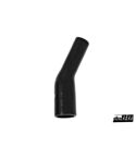 Black 25 degree reducing elbow silicone hose. This type of hose have different inner diameter in both hose ends. The hose is suitable for pressure or suction applications, for example between turbocharger and intercooler or between turbocharger and air filter. Also suitable for coolingsystems.
